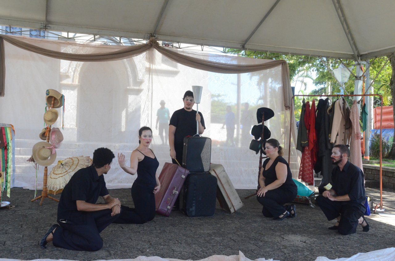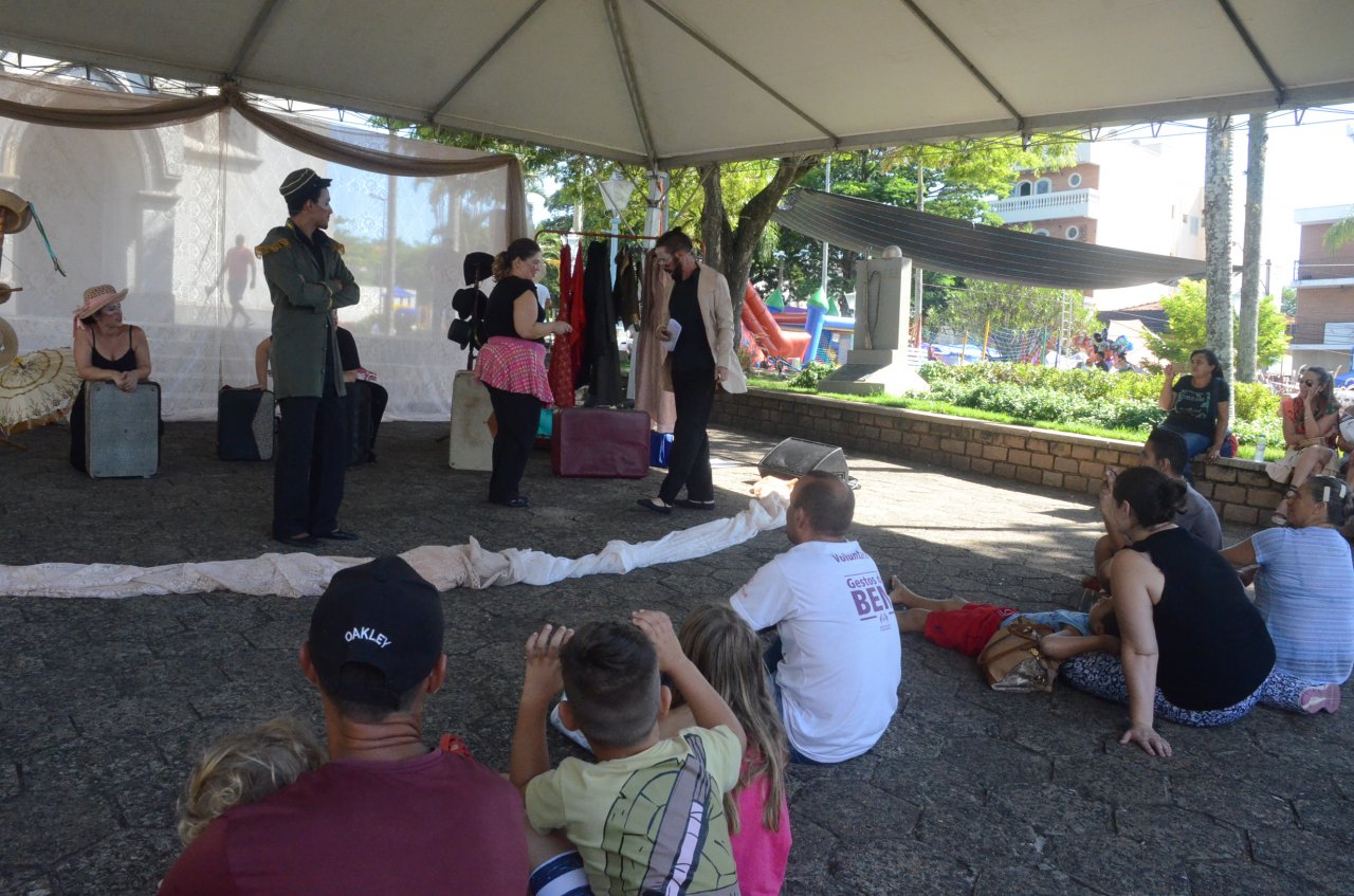 A peça Histórias de Nossa Terra, do grupo Já de Teatro, foi apresentada na Praça Umbelina Bueno, pelo Festival de Férias de Jaguariúna, promovido pela Secretaria de Turismo e Cultura.