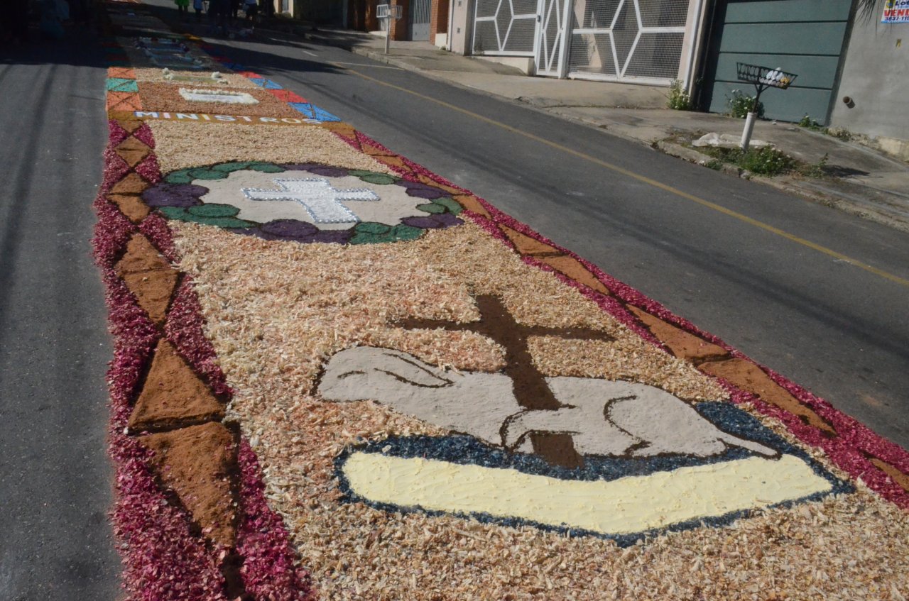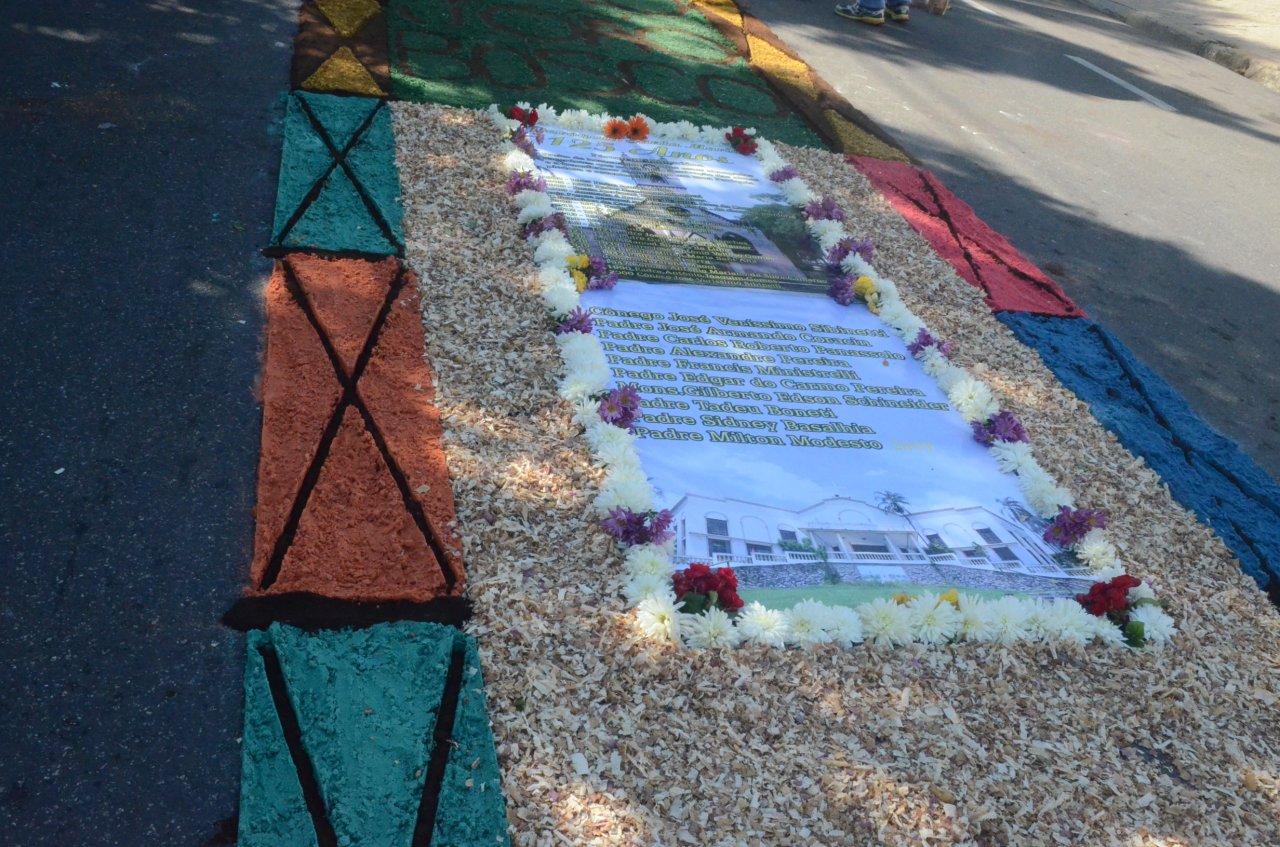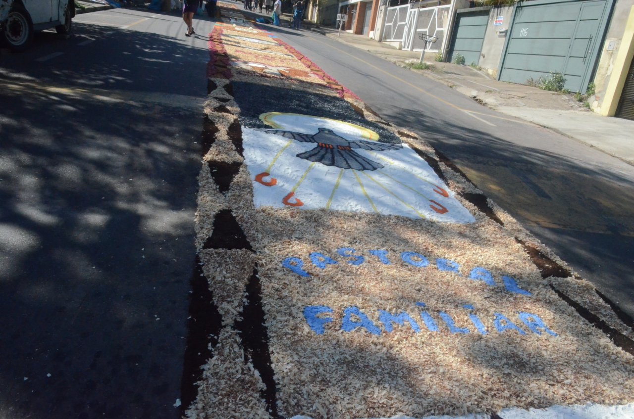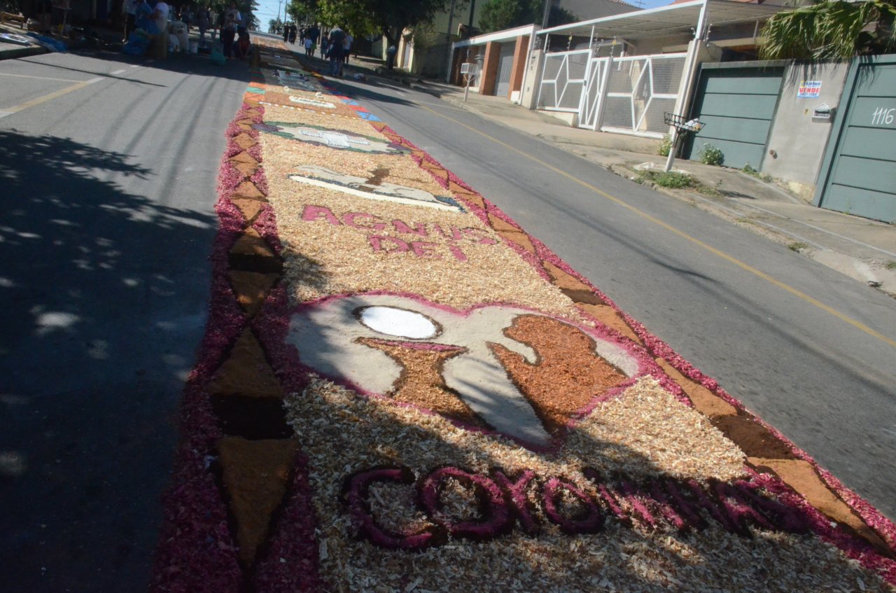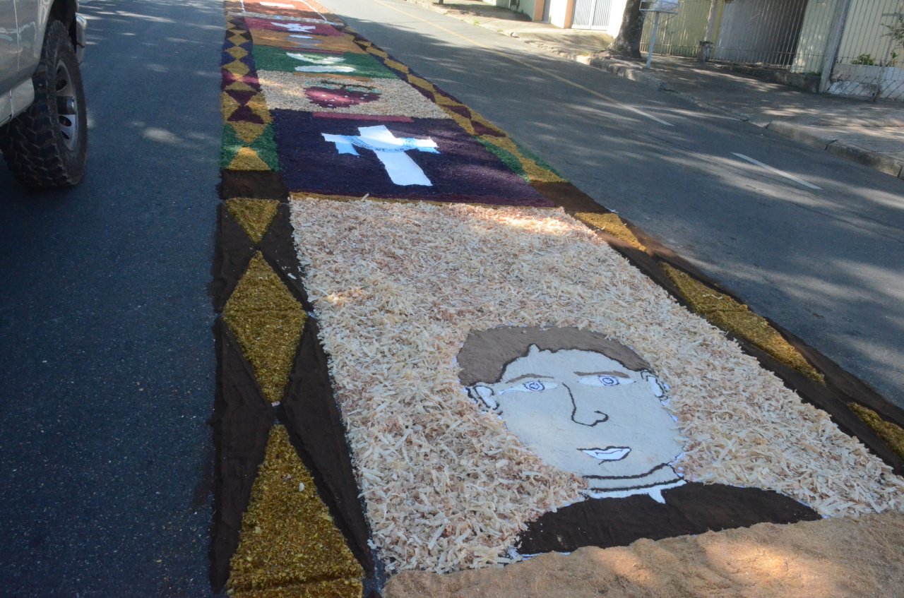 A união entre pessoas de diferentes faixas etárias, de crianças até idosos, marcou a comemoração de Corpus Christi, em Jaguariúna.Na quinta-feira, dia 20, centenas de católicos das três paróquias: Santa Maria, Beata Irmã Dulce e Sagrado Coração de Jesus levantaram cedo e se uniram na confecção do tapete, usando muita criatividade e diferentes materiais, como, serragem colorida, cascas de ovos, plantas, flores e pó de café.