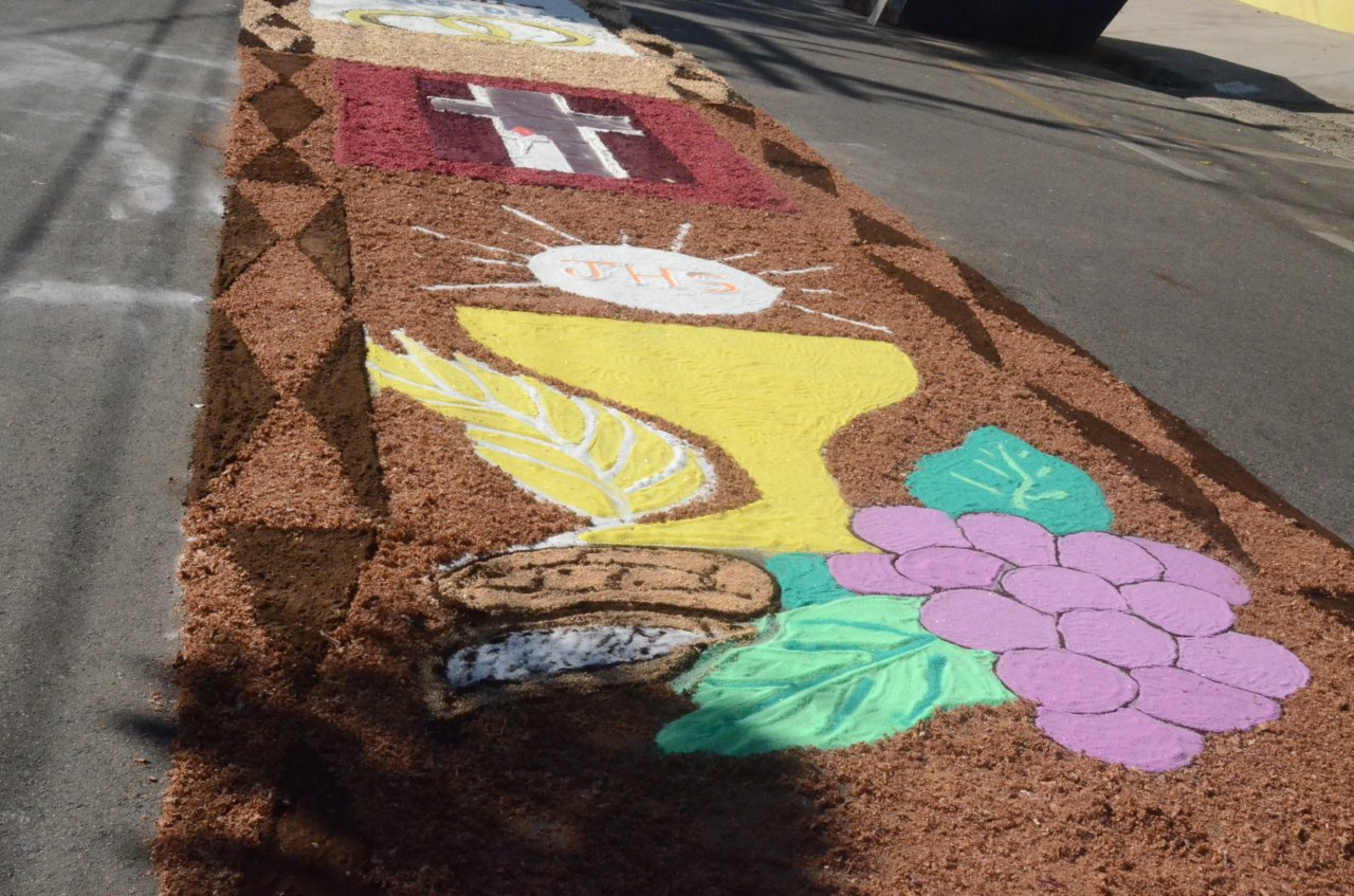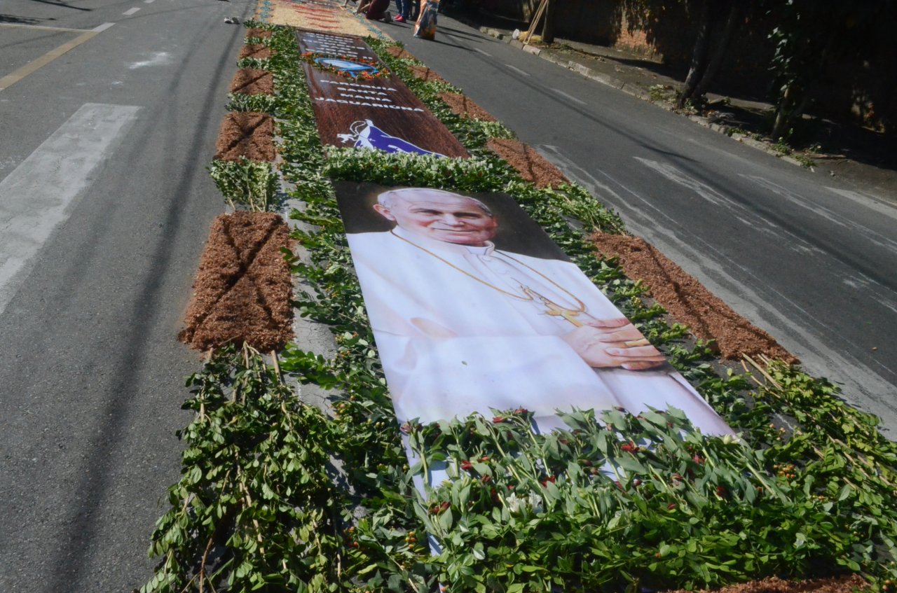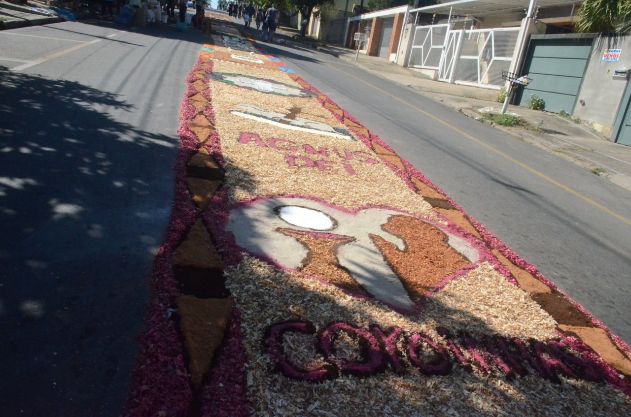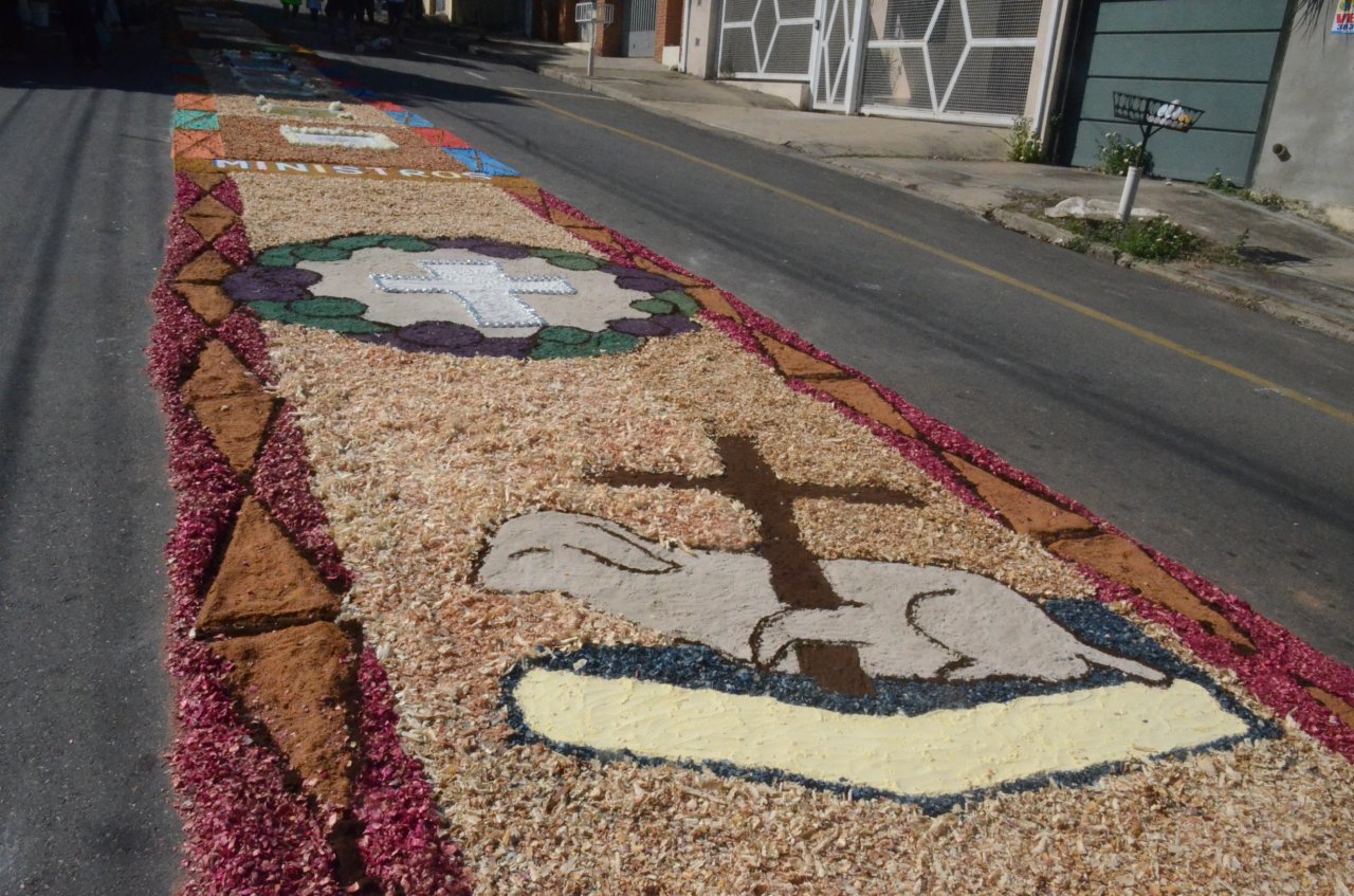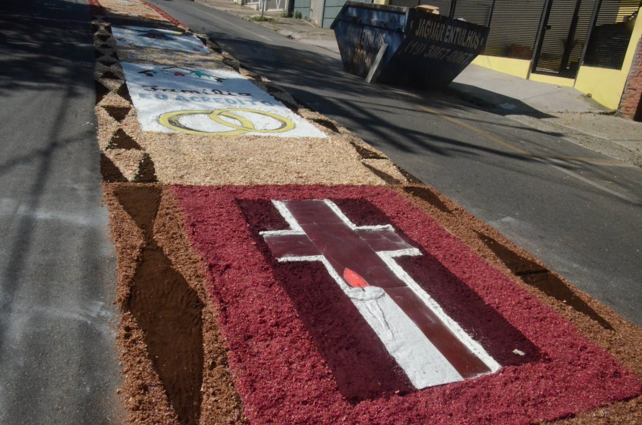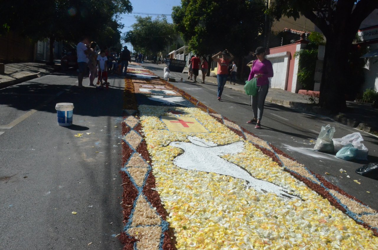 A união entre pessoas de diferentes faixas etárias, de crianças até idosos, marcou a comemoração de Corpus Christi, em Jaguariúna.Na quinta-feira, dia 20, centenas de católicos das três paróquias: Santa Maria, Beata Irmã Dulce e Sagrado Coração de Jesus levantaram cedo e se uniram na confecção do tapete, usando muita criatividade e diferentes materiais, como, serragem colorida, cascas de ovos, plantas, flores e pó de café.