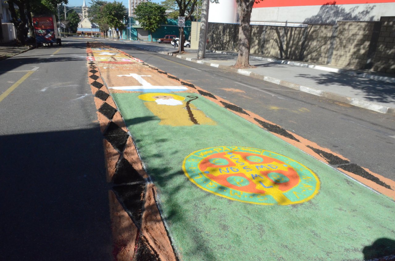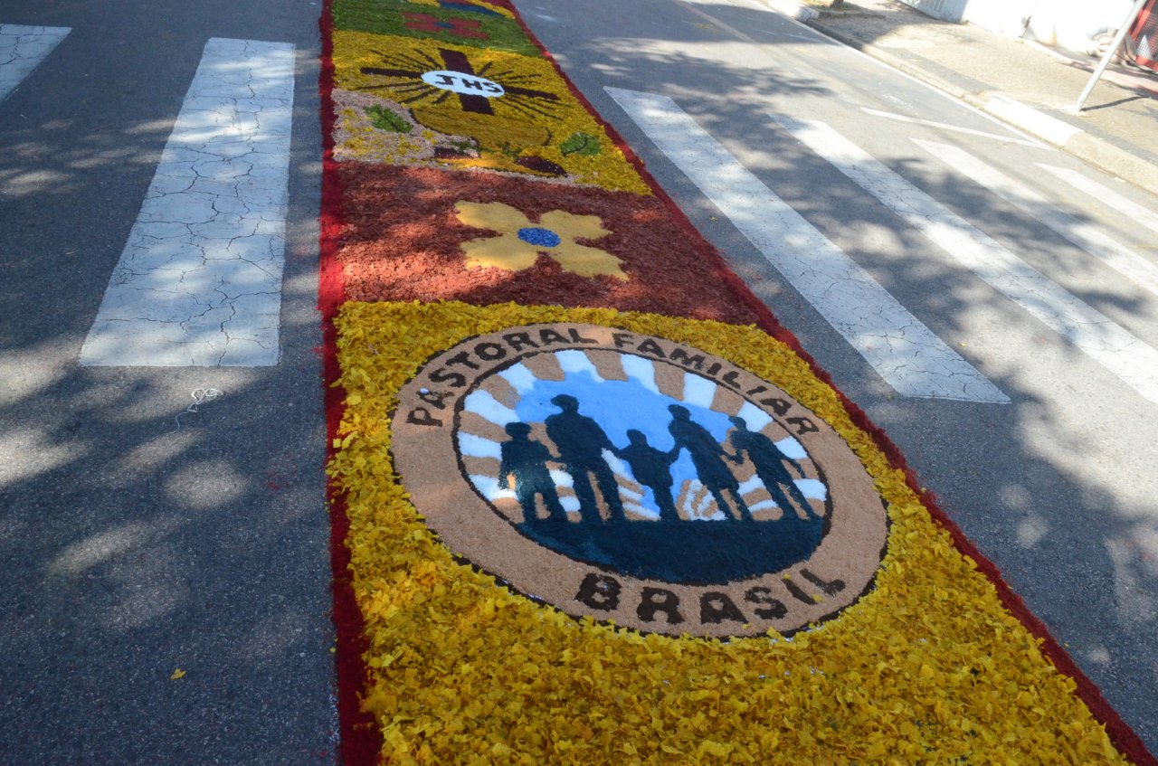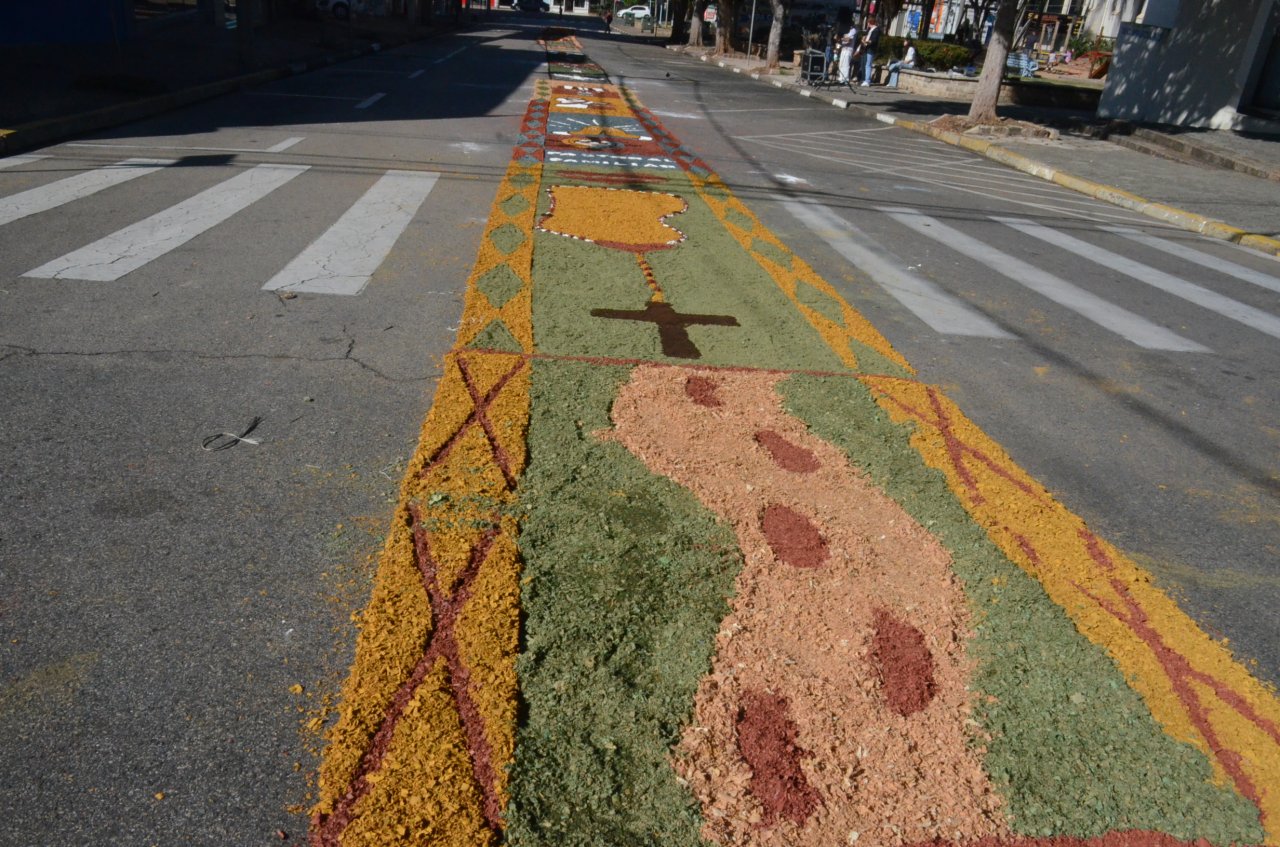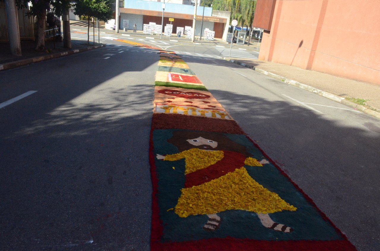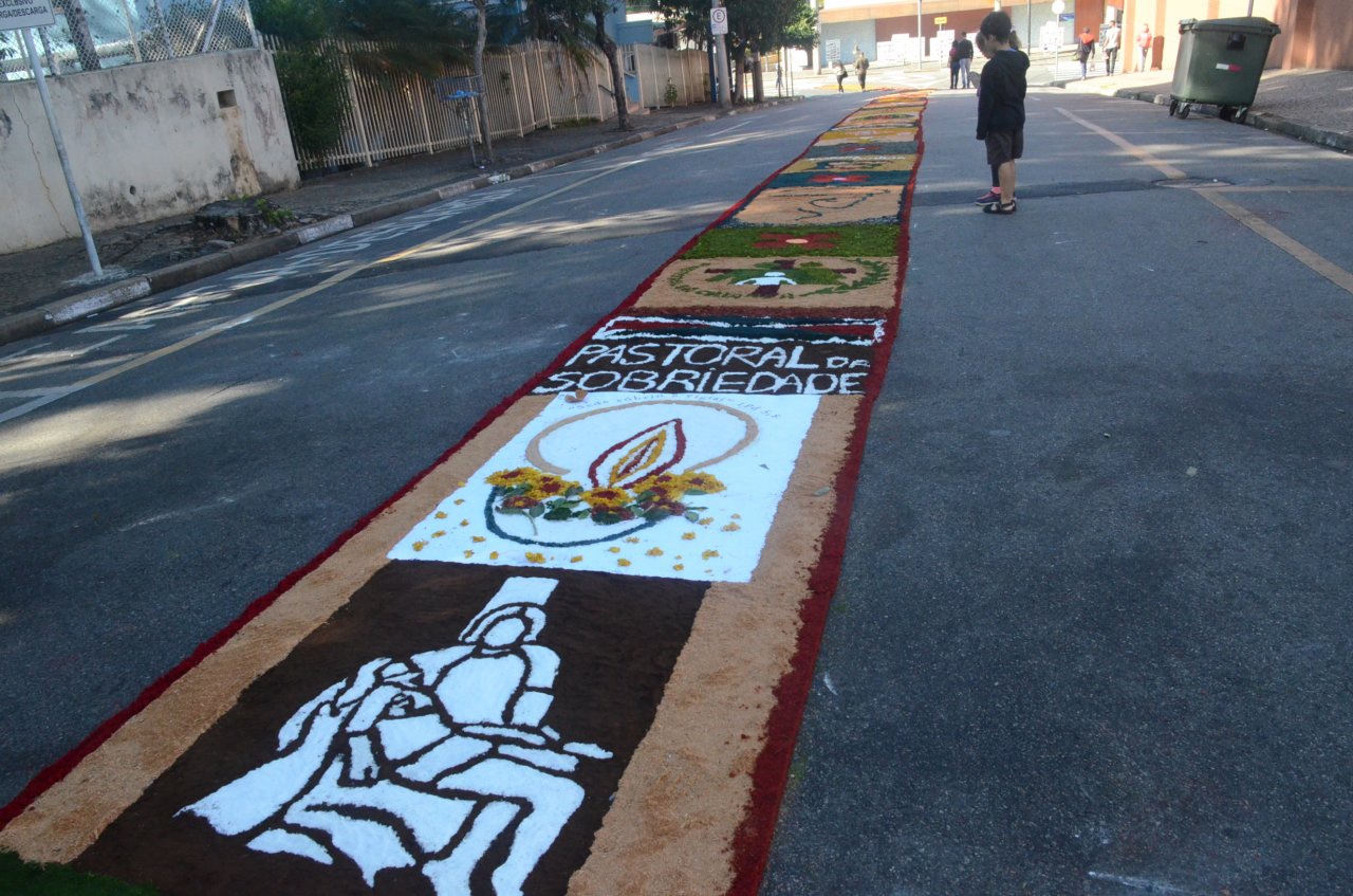 O tapete é sempre um atrativo na celebração, e neste ano, novamente chamou a atenção pela criatividade e pelas mensagens transmitidas através dos desenhos e das frases.