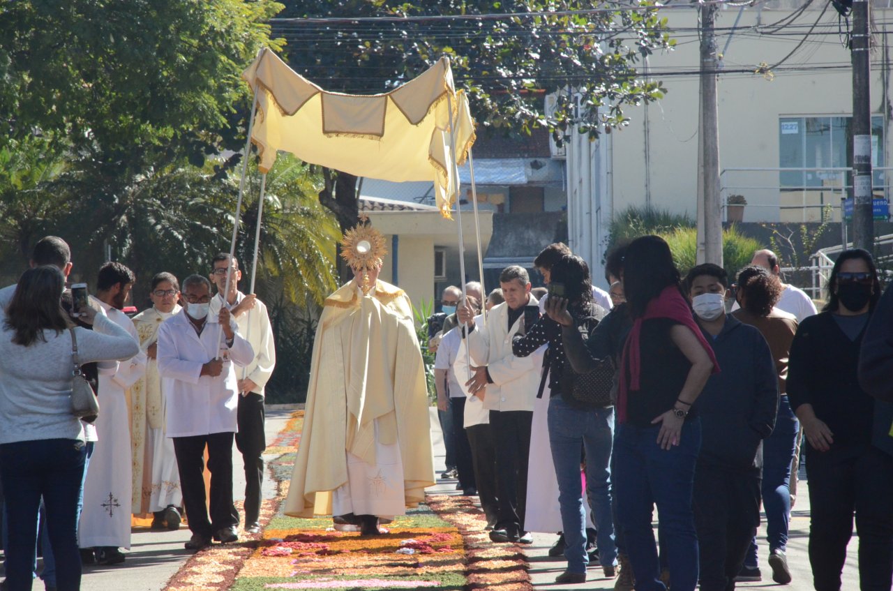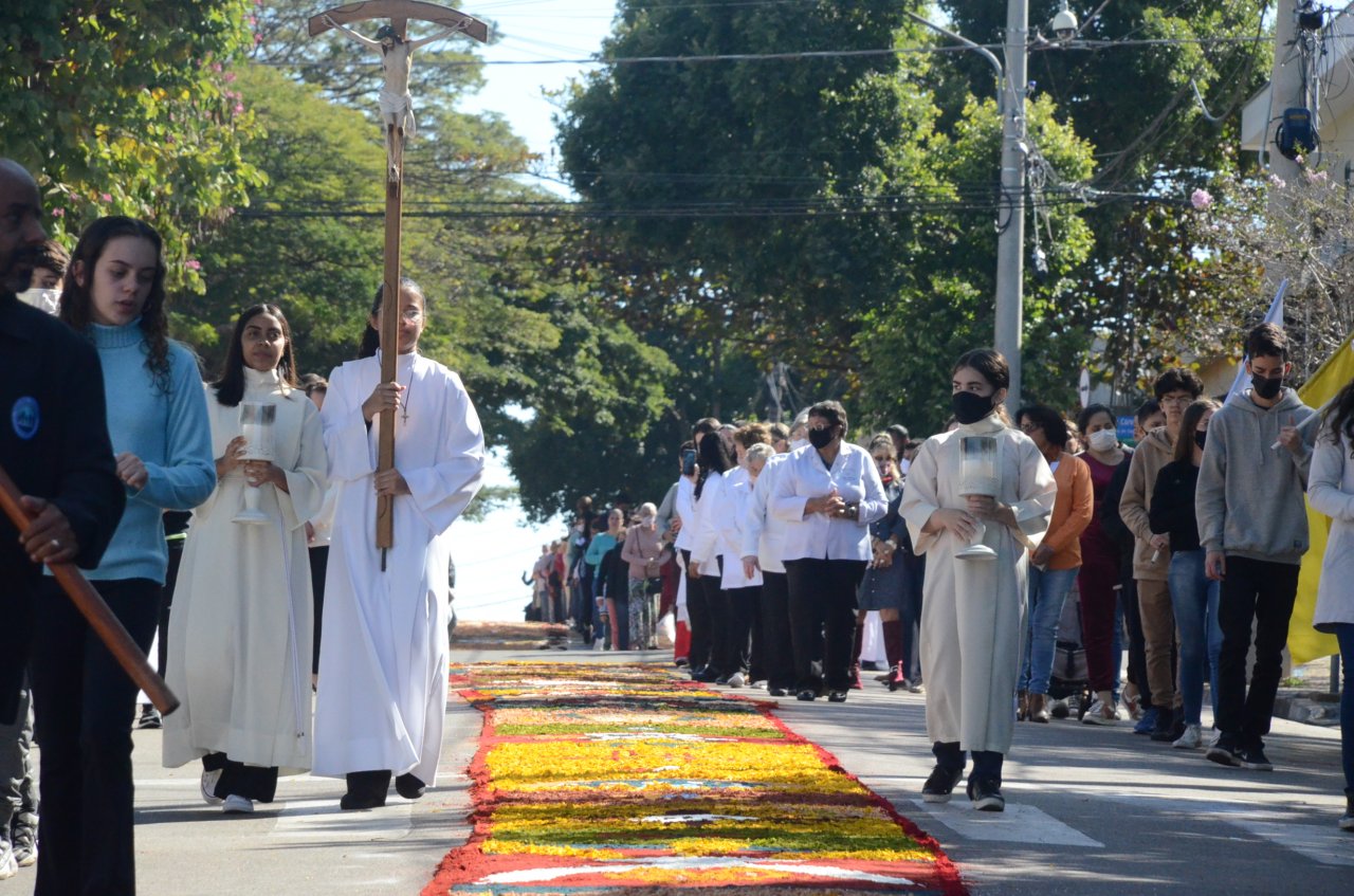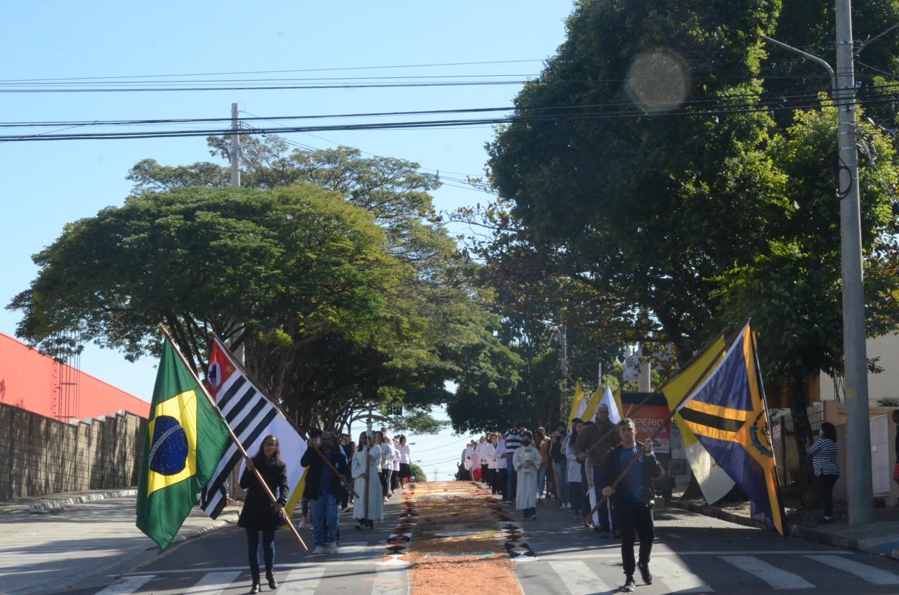 Mais de dois mil católicos das paróquias Santa Maria, Sagrado Coração de Jesus e Santa Dulce dos Pobres participaram da missa e procissão de Corpus Christi, na manhã da quinta-feira, dia 16.A missa foi celebrada na Matriz de Santa Maria e em seguida, os católicos seguiram em procissão passando pelo enorme tapete, construído na rua Amâncio Bueno, num trecho da Alfredo Bueno e na Praça Umbelina Bueno.