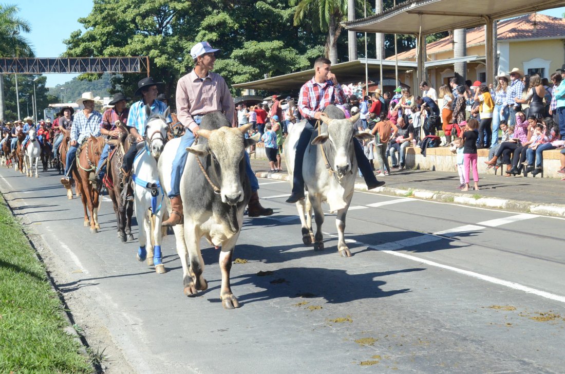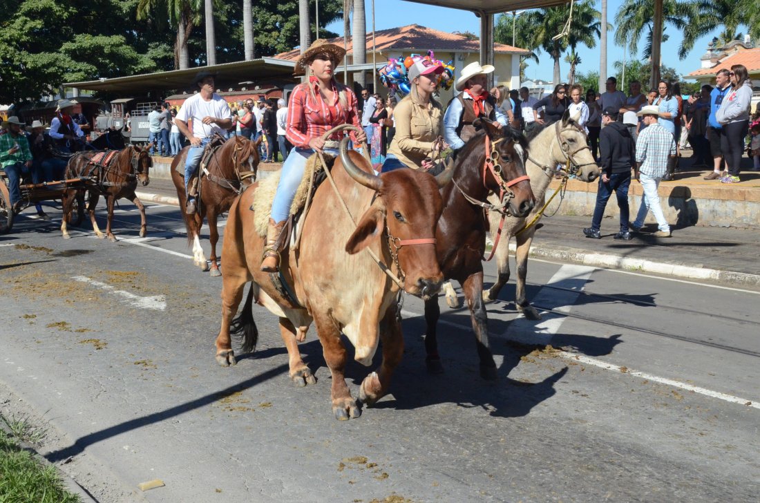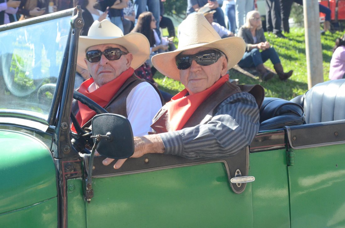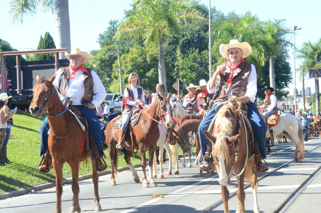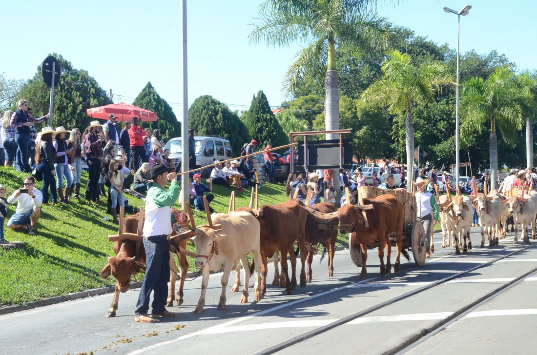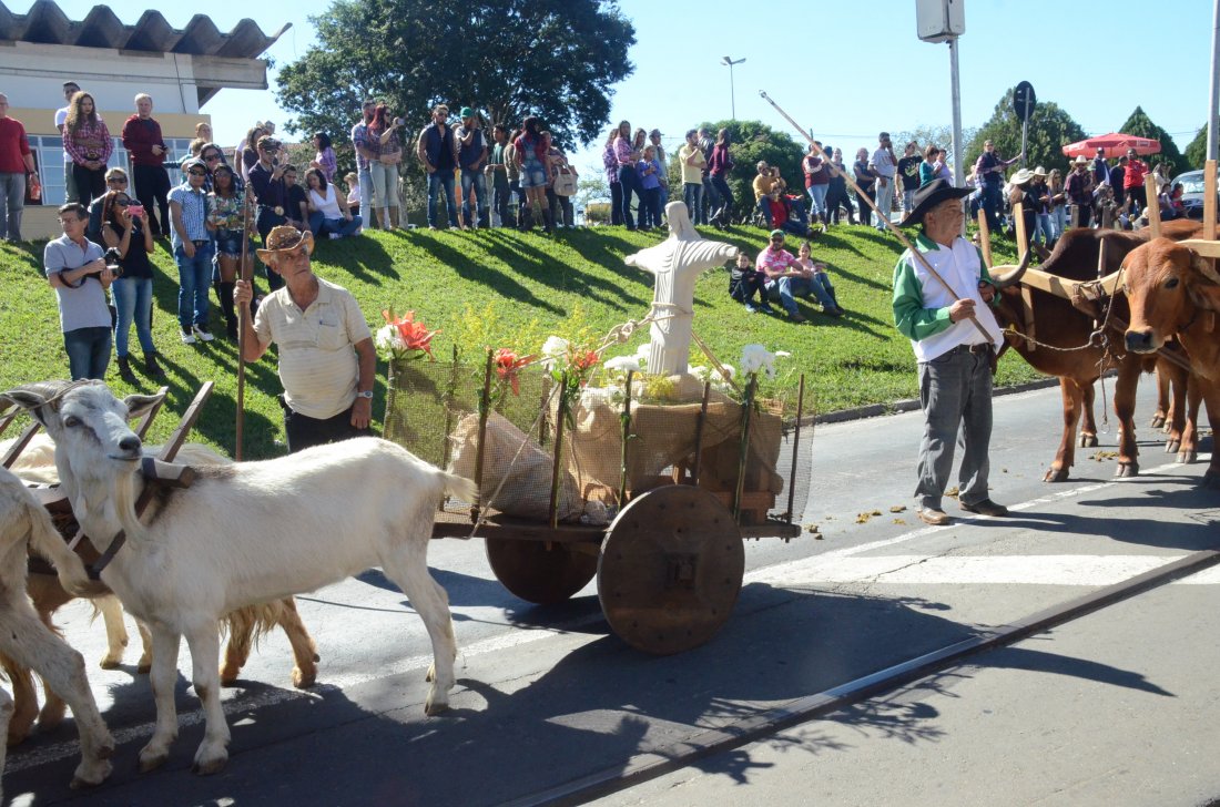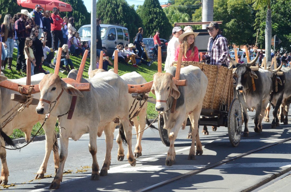 O desfile ainda manteve a tradição dos carros de boi, charretes, cavalos, bois de sela e neste ano teve a participação dos animais adestrados do cavaleiro Sérgio Faria, do Haras Agro Maripá, que vem sendo treinados há um ano.