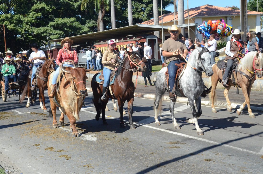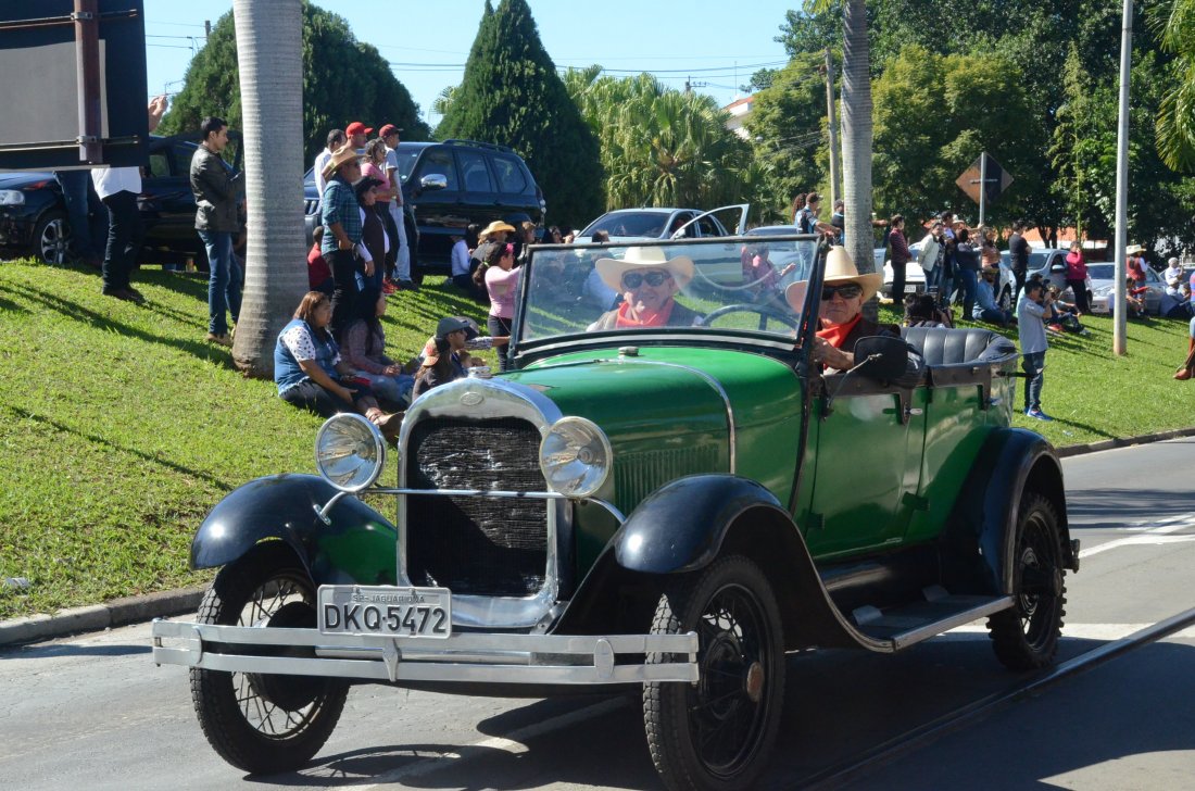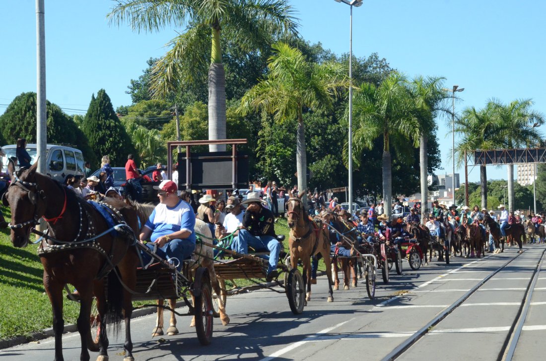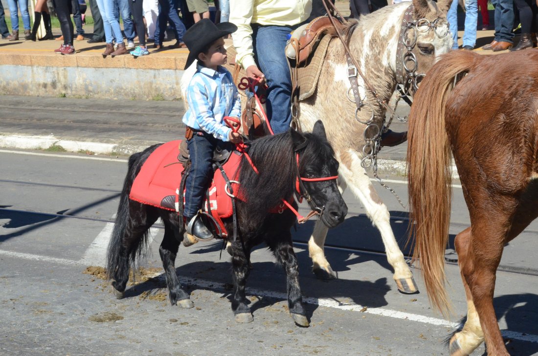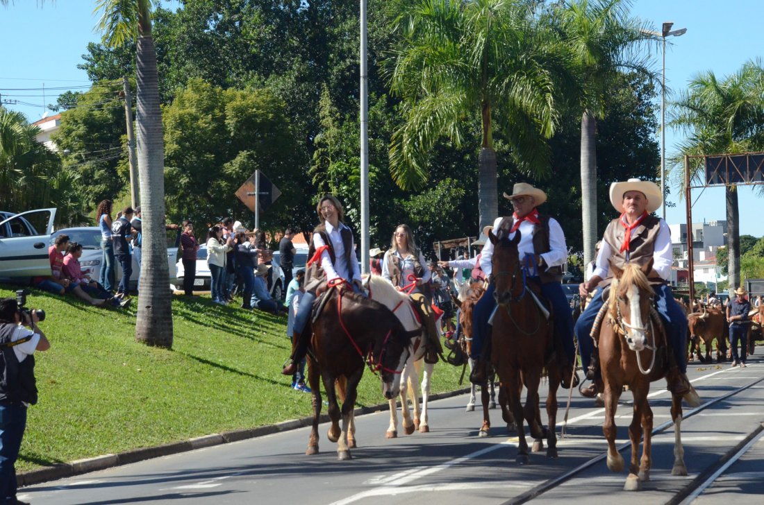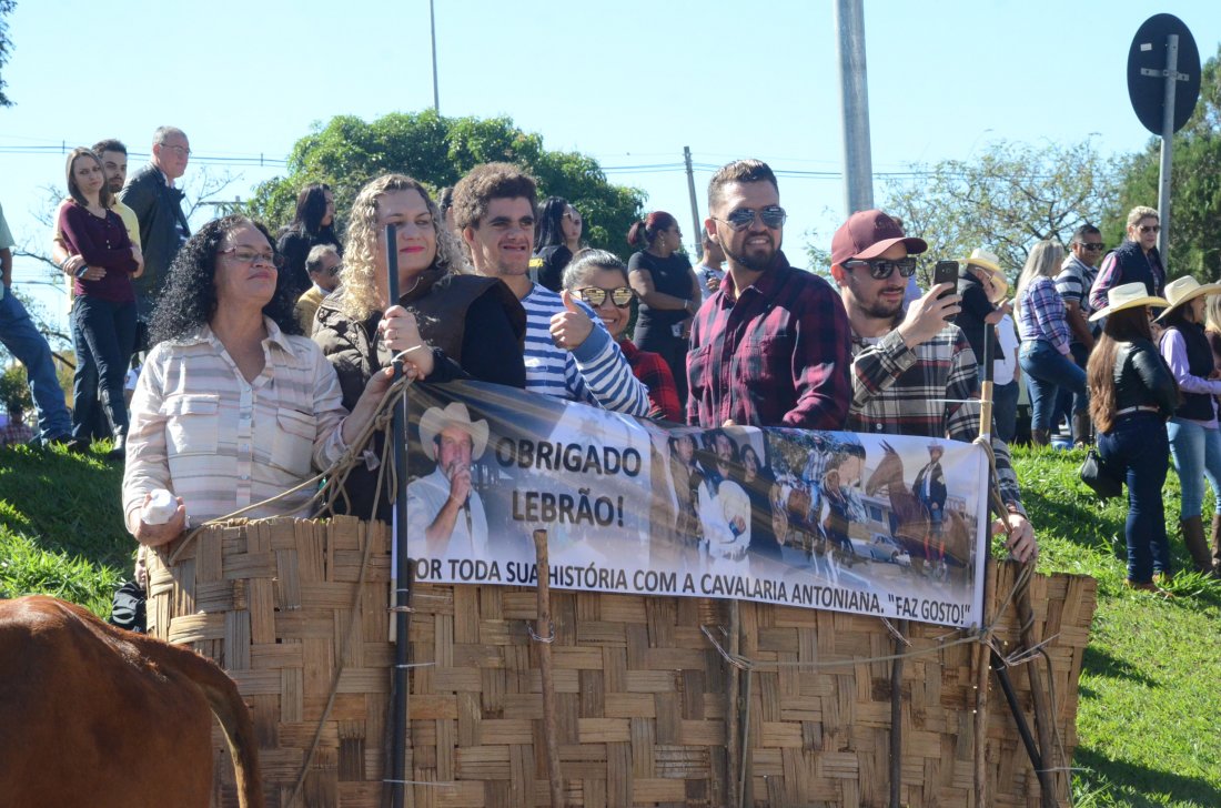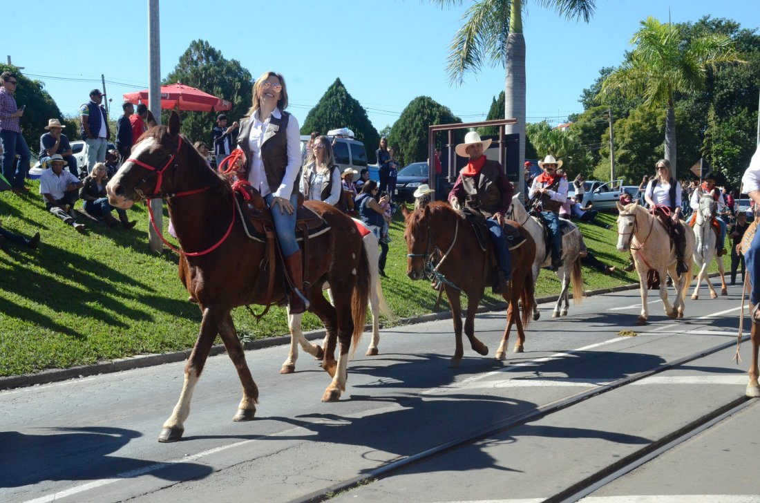 O desfile ainda manteve a tradição dos carros de boi, charretes, cavalos, bois de sela e neste ano teve a participação dos animais adestrados do cavaleiro Sérgio Faria, do Haras Agro Maripá, que vem sendo treinados há um ano.