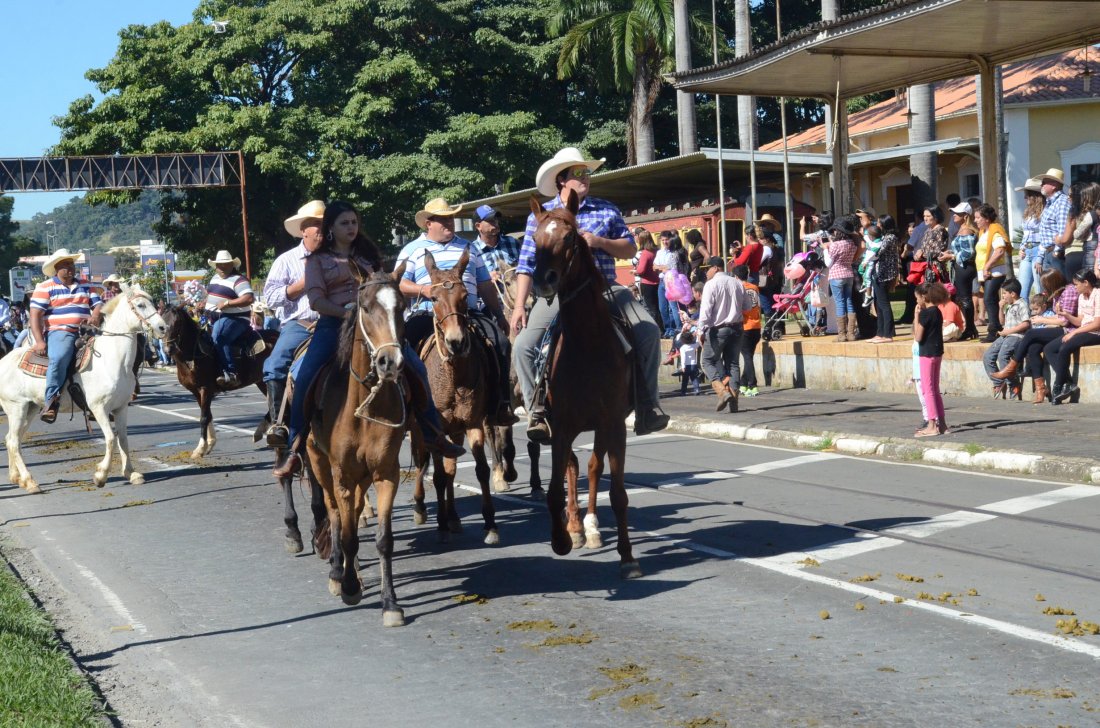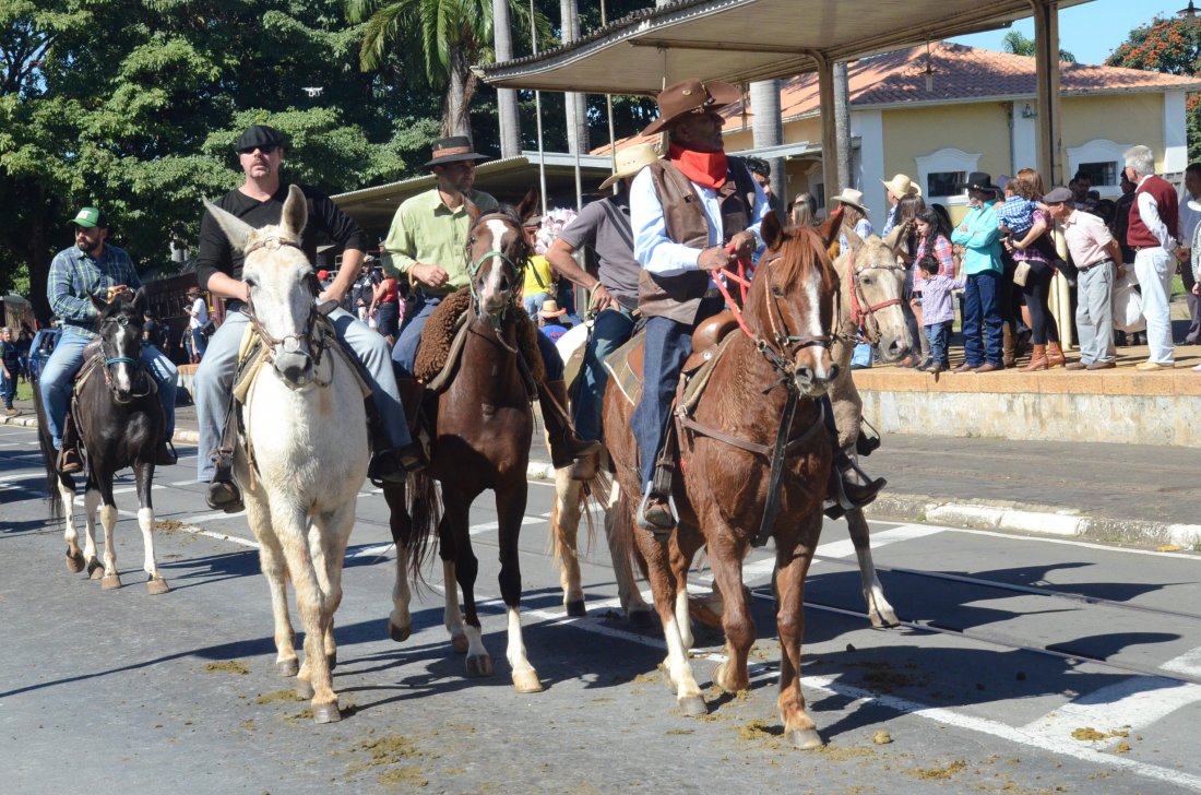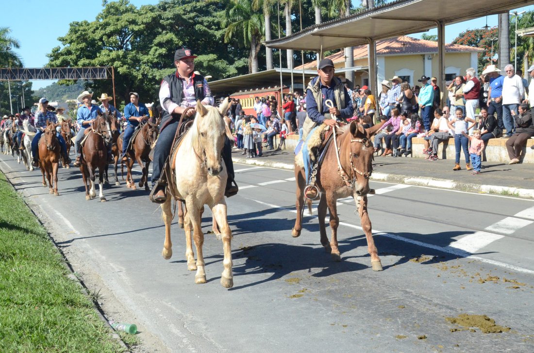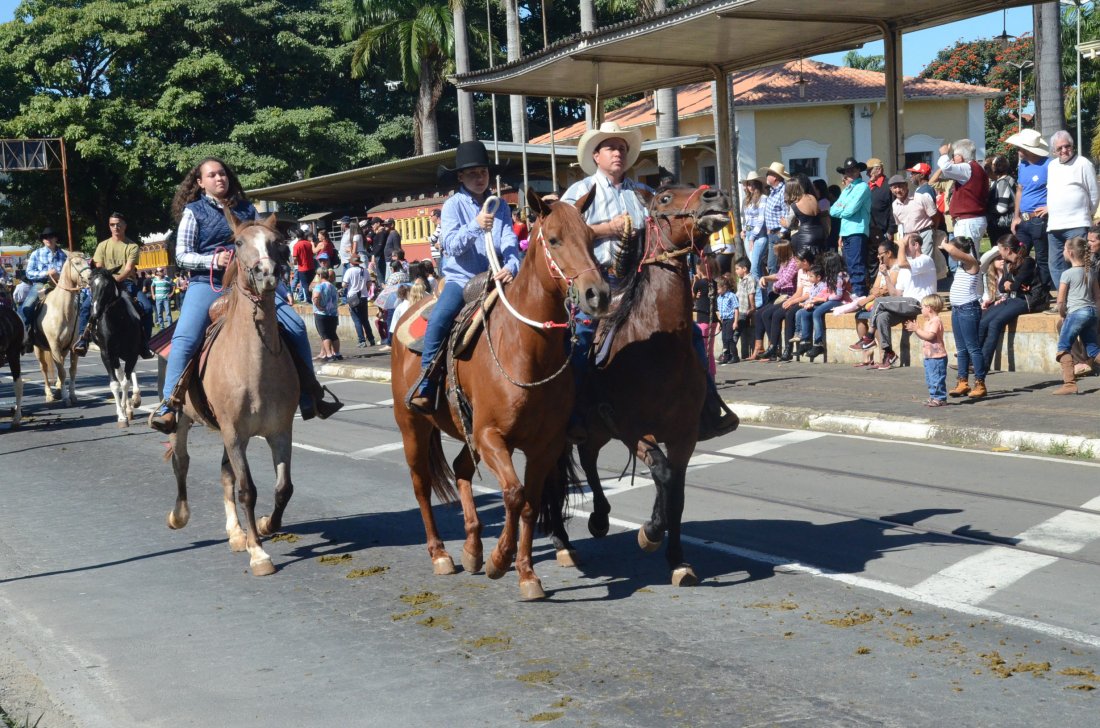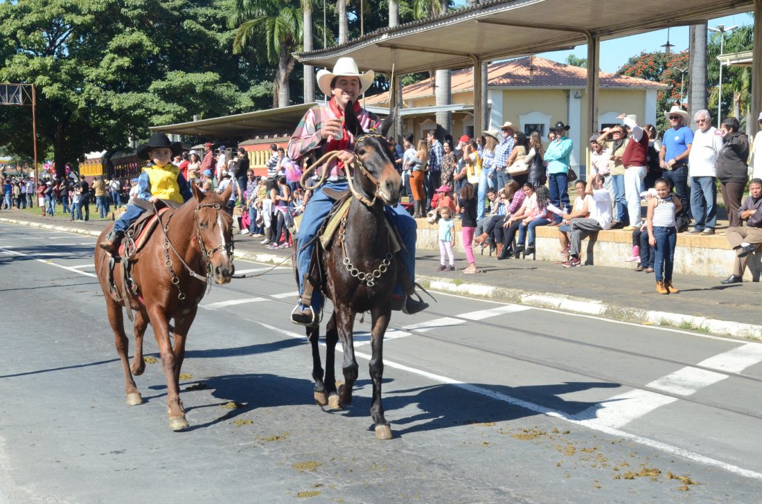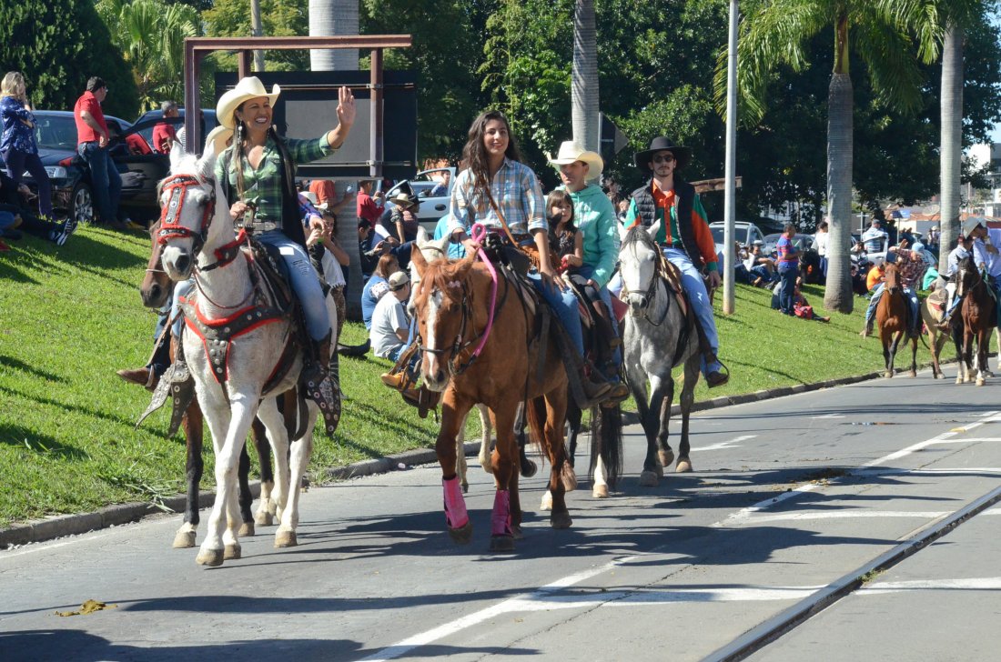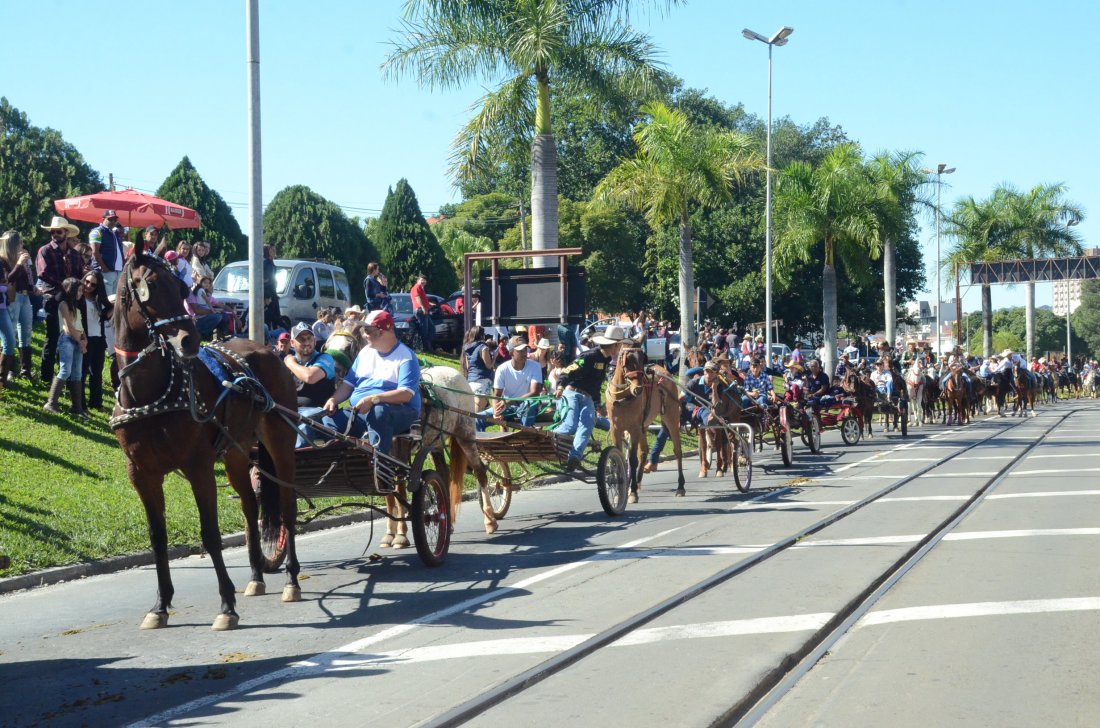 O desfile ainda manteve a tradição dos carros de boi, charretes, cavalos, bois de sela e neste ano teve a participação dos animais adestrados do cavaleiro Sérgio Faria, do Haras Agro Maripá, que vem sendo treinados há um ano.