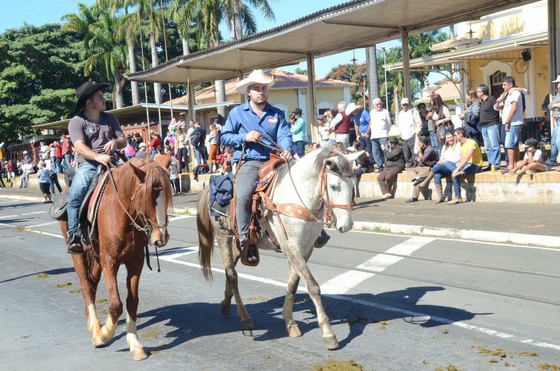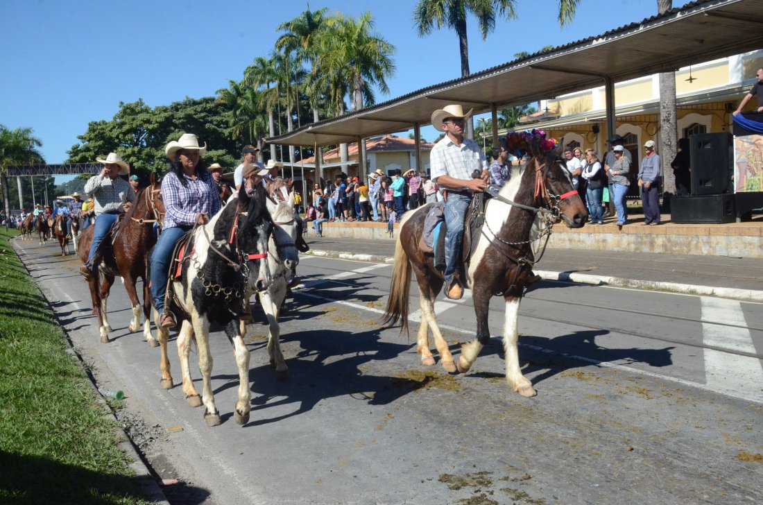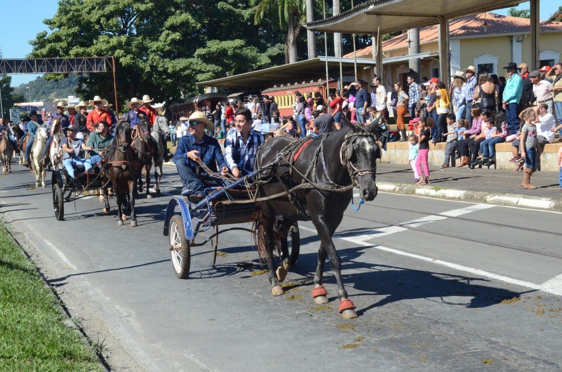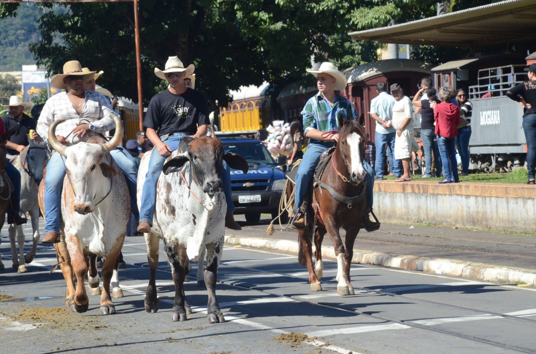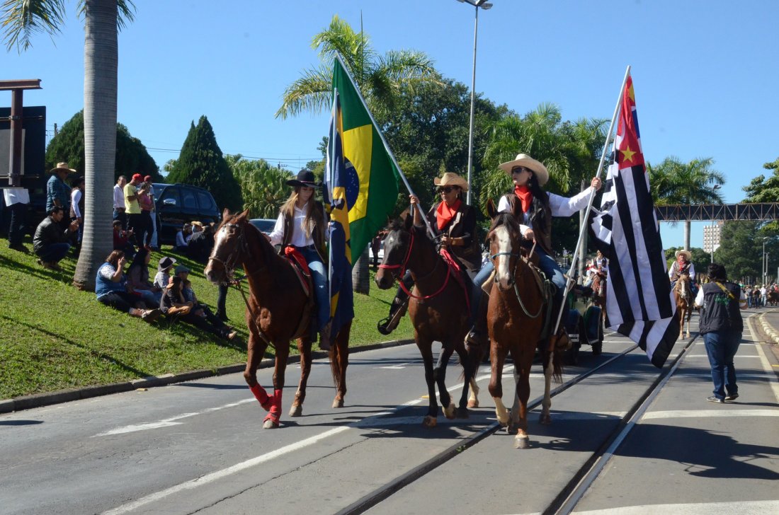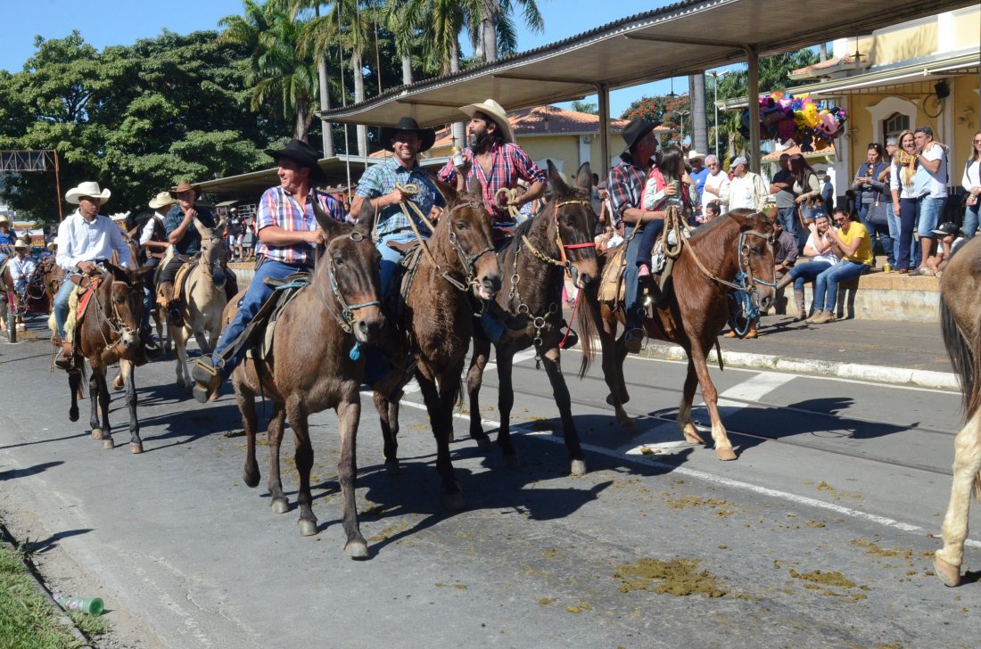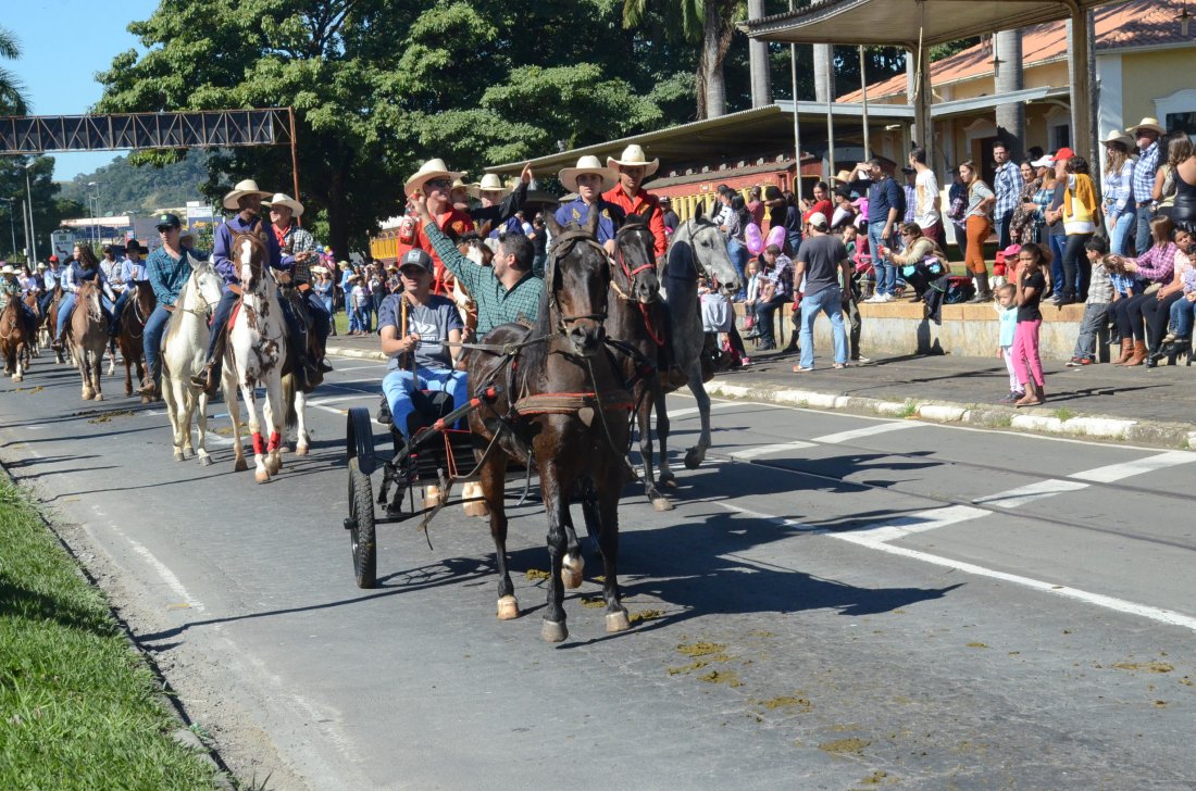 O desfile ainda manteve a tradição dos carros de boi, charretes, cavalos, bois de sela e neste ano teve a participação dos animais adestrados do cavaleiro Sérgio Faria, do Haras Agro Maripá, que vem sendo treinados há um ano.