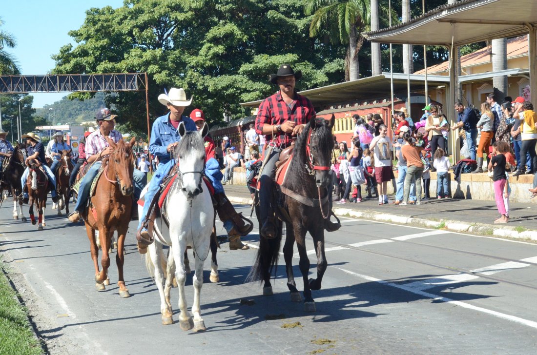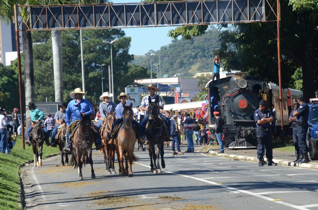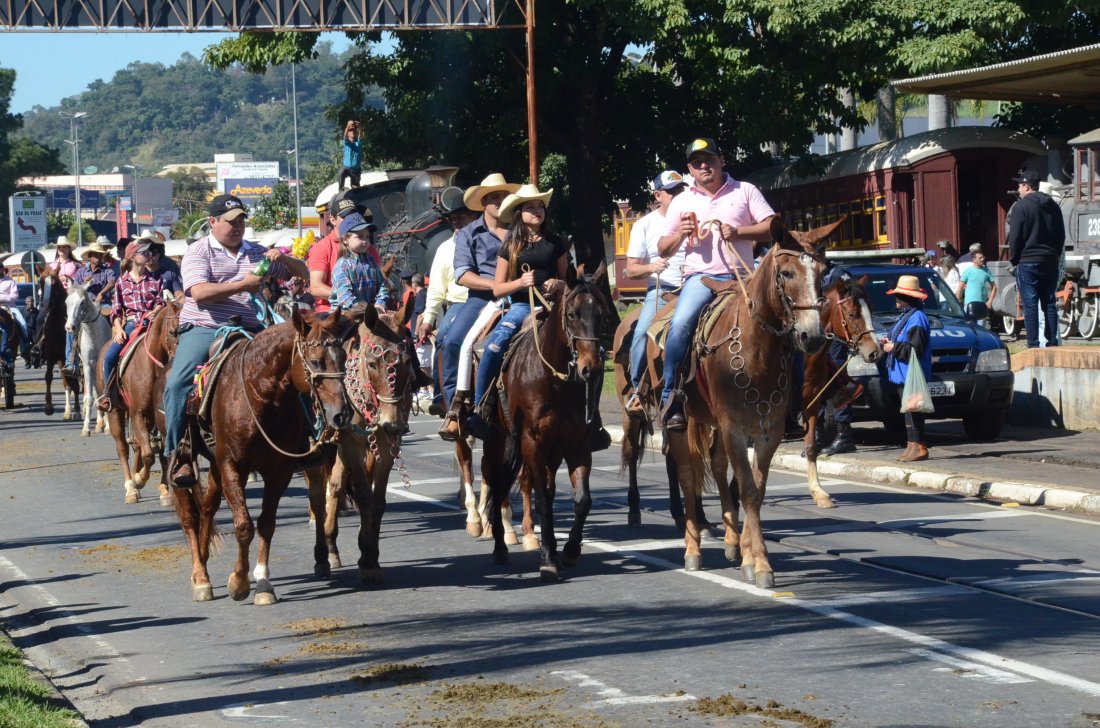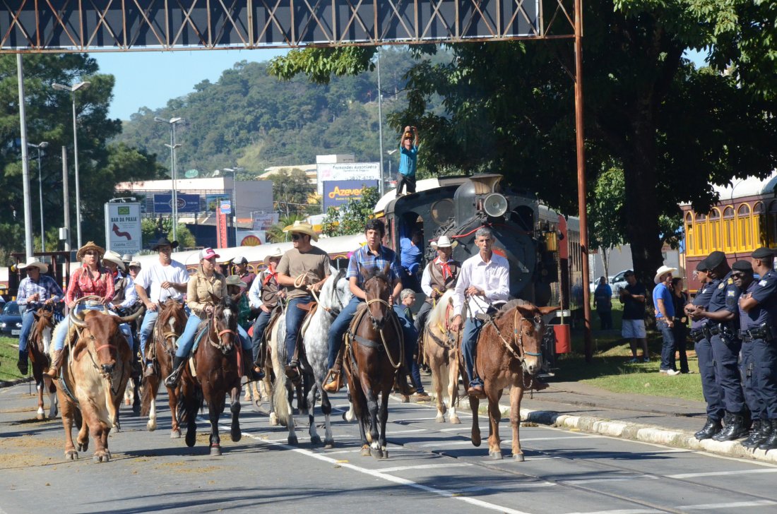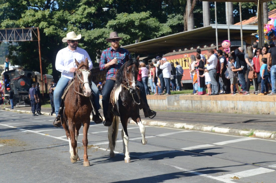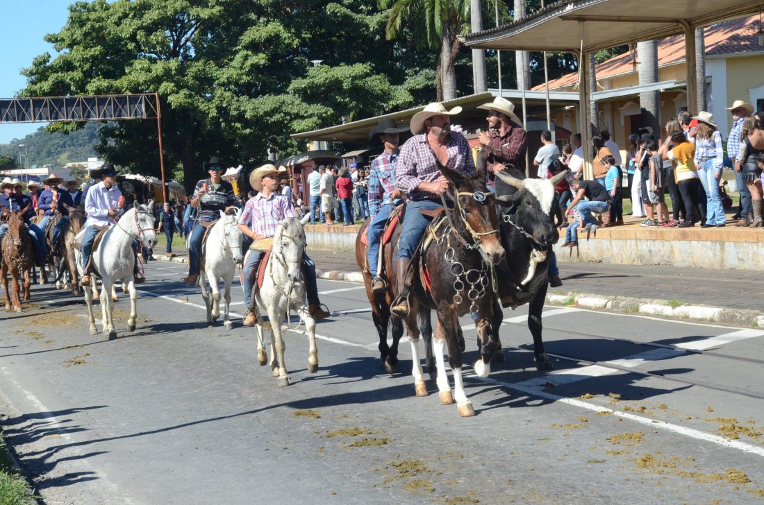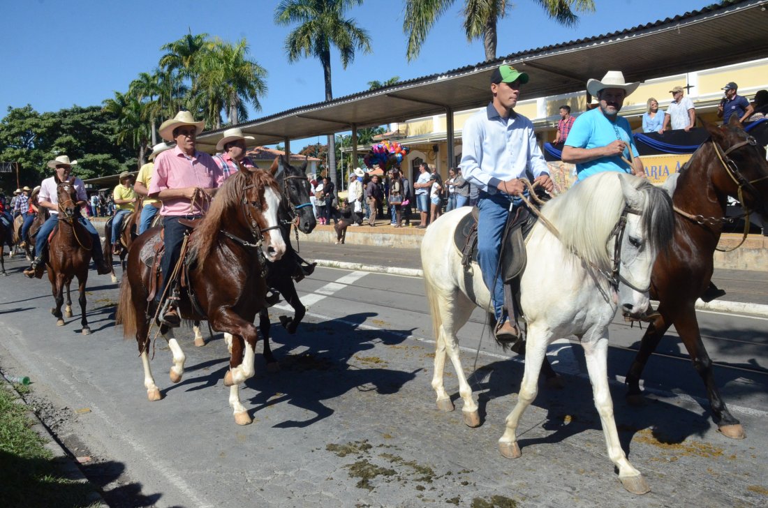 O desfile ainda manteve a tradição dos carros de boi, charretes, cavalos, bois de sela e neste ano teve a participação dos animais adestrados do cavaleiro Sérgio Faria, do Haras Agro Maripá, que vem sendo treinados há um ano.