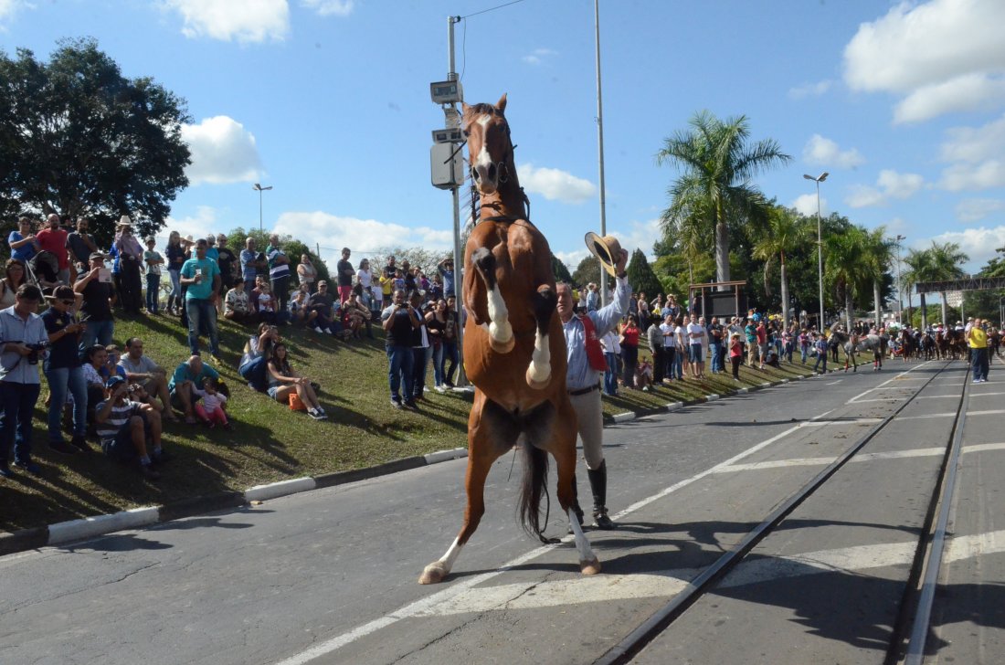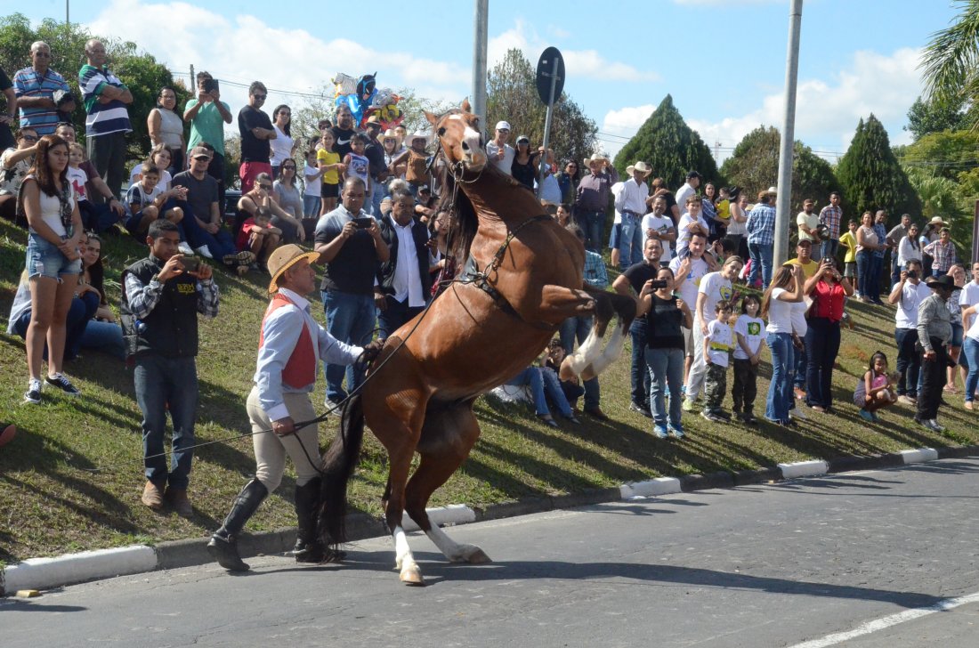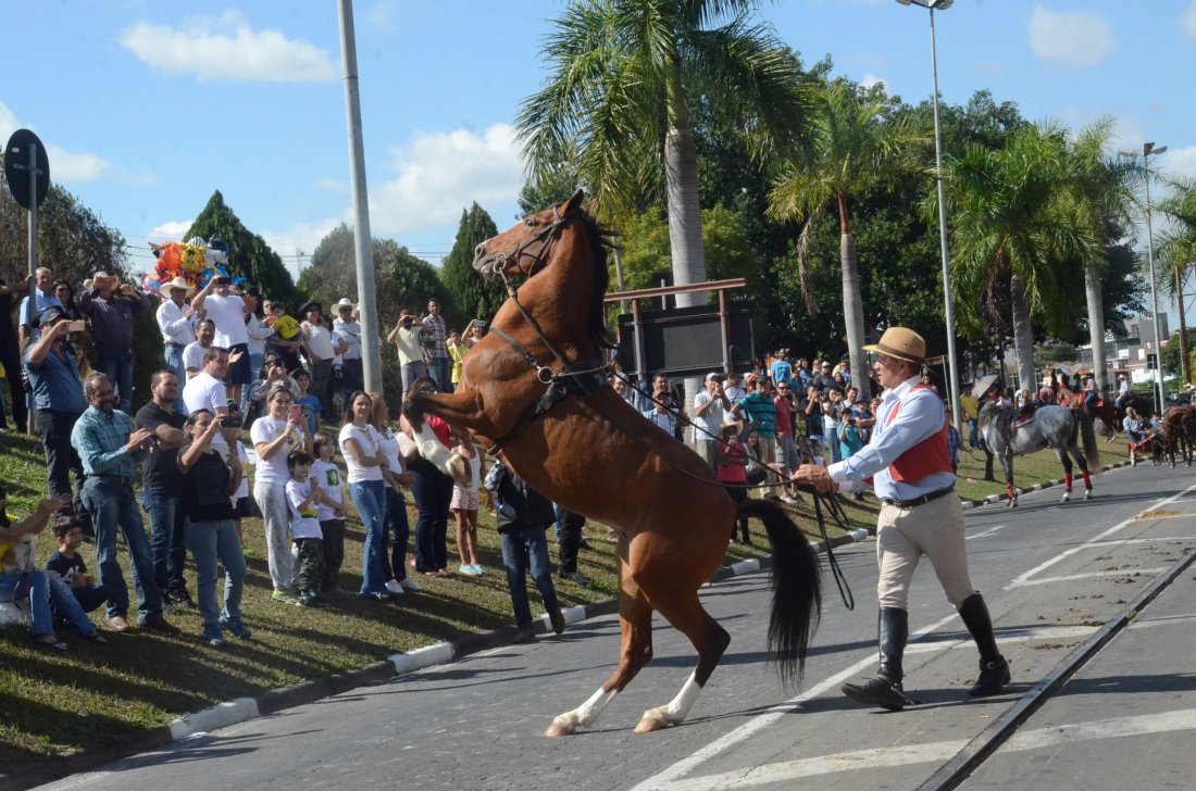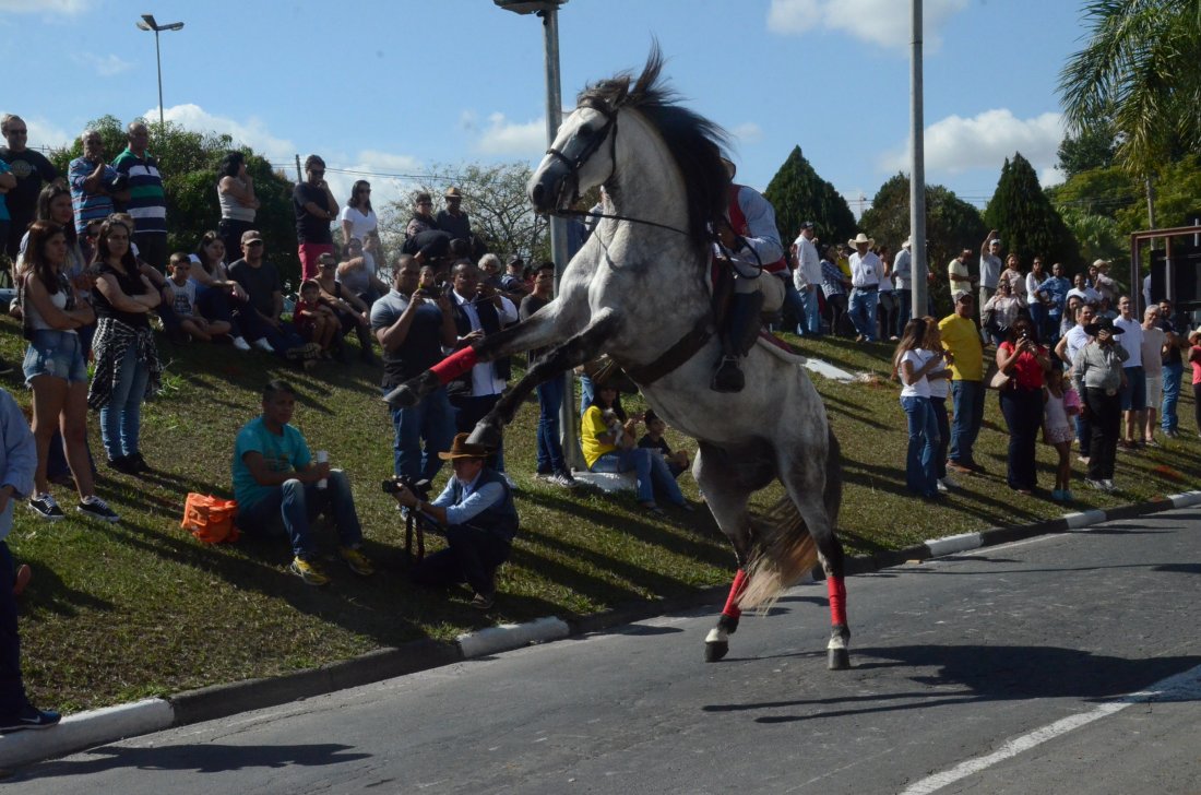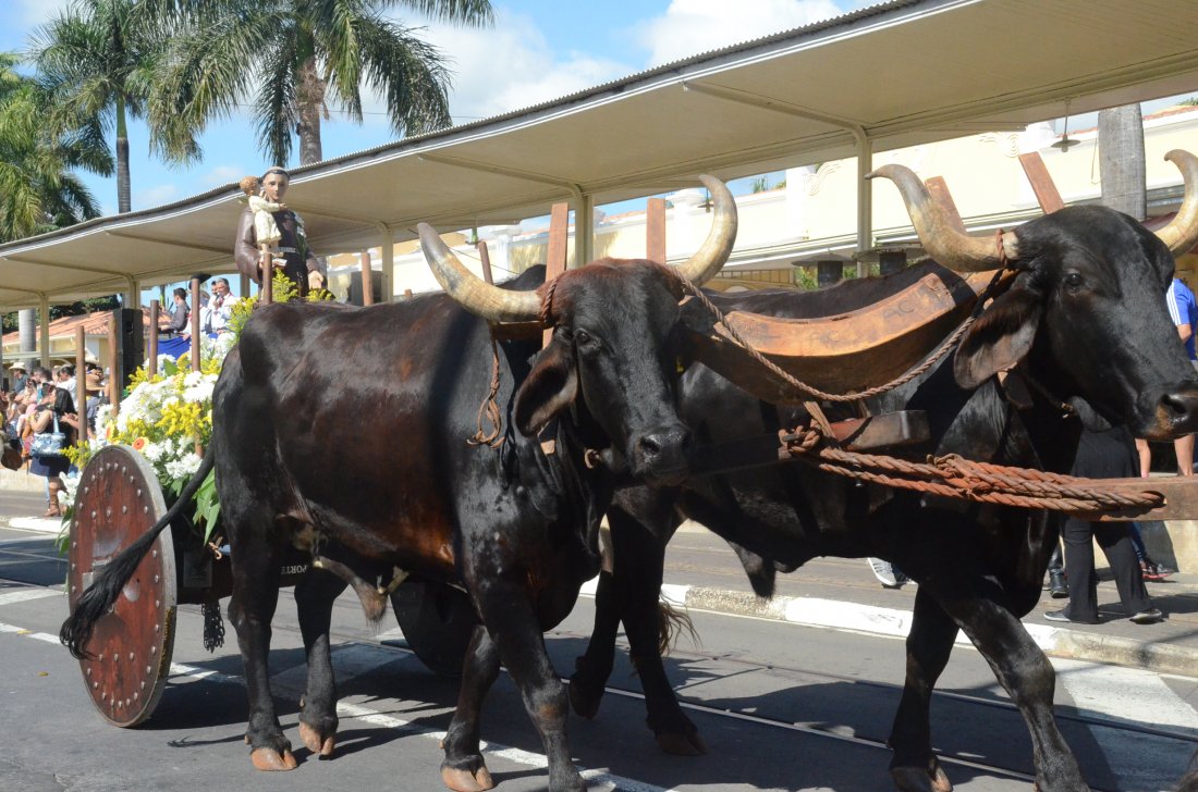 Carros de boi, cavalos, charretes e bois de sela integraram o desfile da 45ª Cavalaria Antoniana, no domingo, 17, em Jaguariúna. Neste ano, a organização manteve a saída do desfile mais cedo e por volta das 11h45, os participantes já estavam passando pelo Centro Cultural Zi Cavalcanti, principal ponto de concentração de público. De acordo com estimativa da organização, o evento foi prestigiado por cerca de 10 mil pessoas, e ficou abaixo dos números registrados nas edições anteriores.A programação contou com a apresentação de cavalos adestrados da raça Luzitana, de Morungaba, que mostraram habilidades de dança e equilíbrio na avenida. O adestrador Luiz Carlos Pires de Oliveira disse que foi um prazer mostrar o seu trabalho de adestramento para o público de Jaguariúna.